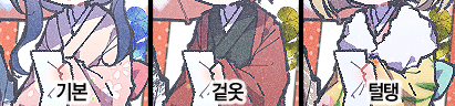 샘플을 자주 갱신하기 때문에 '몇 번째 샘플의 입매, 눈 모양, 패턴…'처럼 설명하시면 알아보기가 어렵습니다.