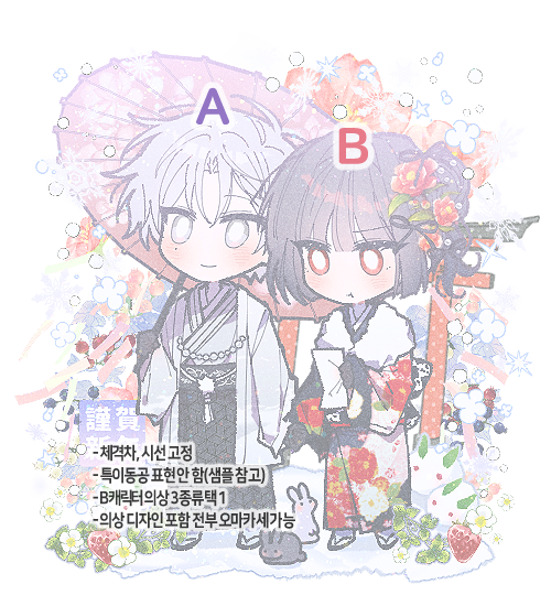 배경 등 꾸밈색은 따로 요청이 없는 이상 기본 페어 컬러와 어울리게 오마카세입니다.
