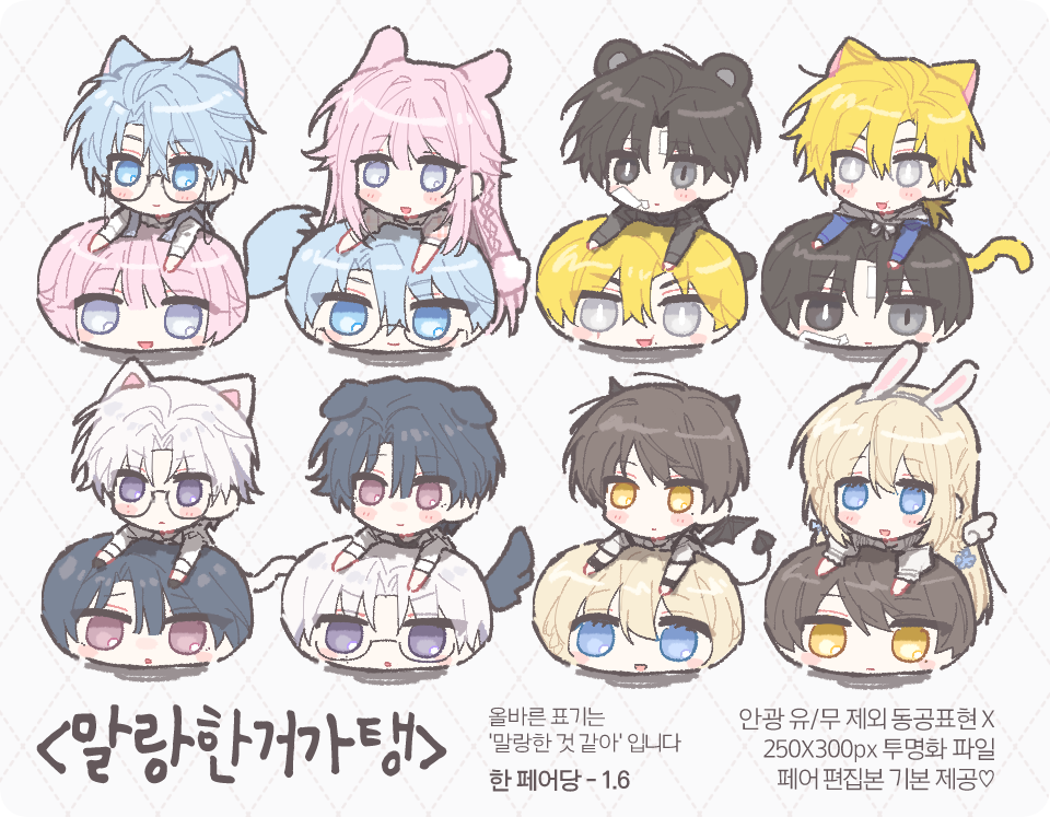 | 1. 캐릭터 자료(외관+옷 소매 포함 상체 의상만) 2. 캐릭터 표정(오마카세 가능) 3. 만두 표정(오마카세 가능) 4.(페어 편집 신청시)페어명 1~3번의 내용을 포함하여 캐릭터 자료를 보내주세요! (외부링크x, 바로 이미지+카톡 본문 텍스트로 보내주세요) 글로만 된 자료는 받지 않습니다. 상반신만 있어도 괜찮은 커미션이니 최대한 간결하게 이미지 한장으로 정리 부탁드립니다. 필요없는 자료(전신 등) 첨부하지 말아주세요. 정보값이 지나치게 많아 해석이 필요한 자료는 신청을 거절드릴 수 있습니다. |